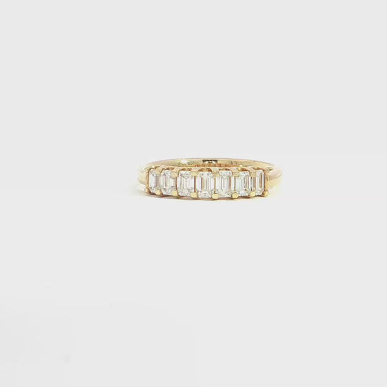 Dieser zeitlos moderne Ring aus 18kt Gelbgold wird durch sieben präzise geschliffene Diamanten im Baguette-Schliff veredelt. Die klare, längliche Form der Baguette-Diamanten verleiht dem Ring eine elegante Linienführung und ein edles, architektonisches Funkeln.