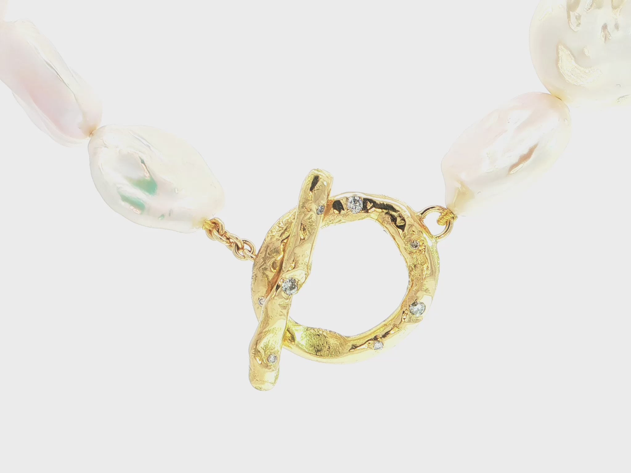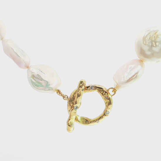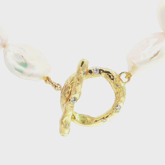 Keshi-Perlenkette mit Designverschluss aus 18kt Gelbgold und Brillanten – organisches Unikat