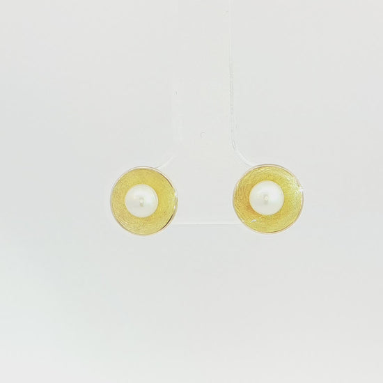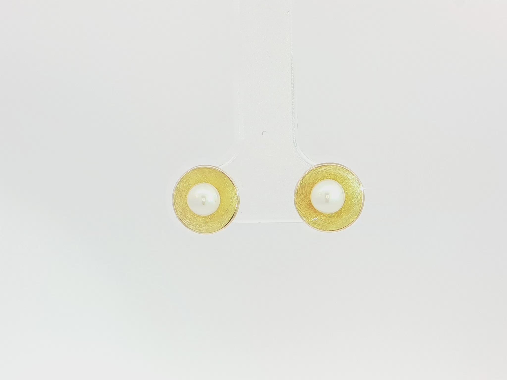 Klassisch, elegant und klar in der Form – diese Ohrstecker aus massivem 18kt Gelbgold verbinden feines Design mit hochwertiger Handwerkskunst. Jeder Stecker besteht aus einer leicht bombierten Goldschale (Ø ca. 10 mm), auf deren Mitte eine runde weiße Süßwasserperle (Ø 4,5 mm) sitzt.