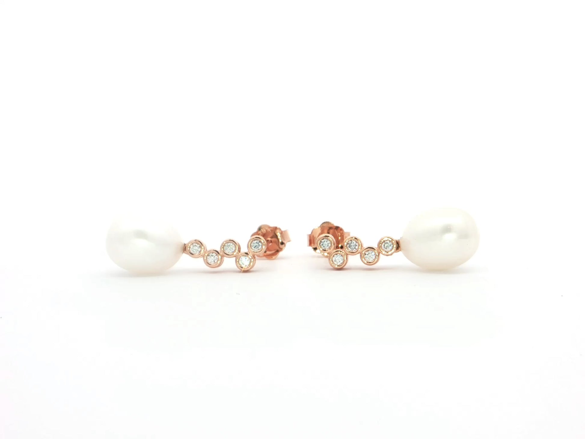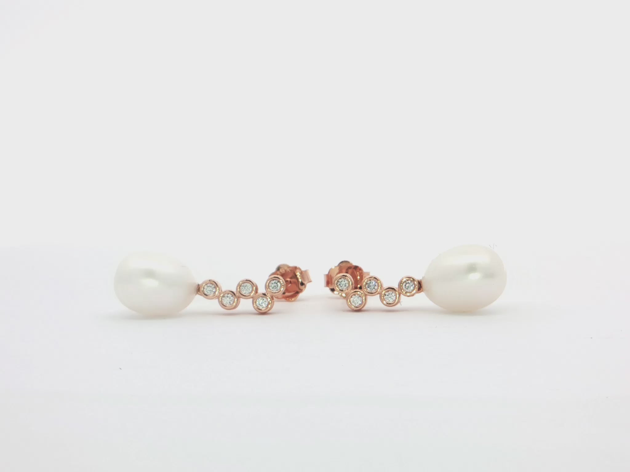 Am unteren Ende jedes Ohrsteckers sitzt eine bewegliche, tropfenförmige Süßwasserperle. Durch die zarte Beweglichkeit schwingt die Perle bei jeder Kopfbewegung elegant mit und lässt das Zusammenspiel aus Rotgold, Diamantfeuer und Perlenglanz besonders harmonisch erscheinen.
