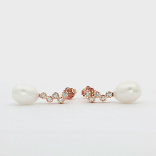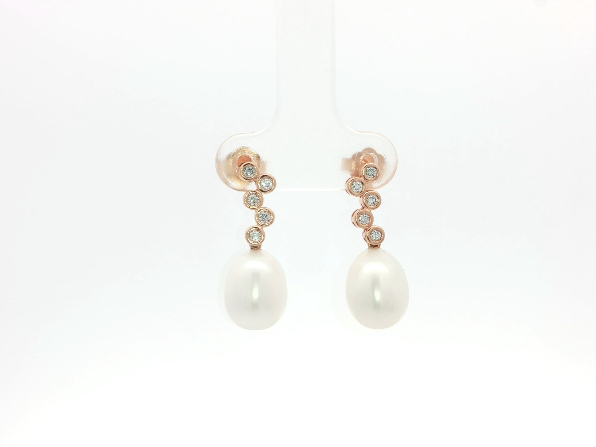 Ohrstecker aus 18kt Rotgold mit Brillanten und beweglichen Perlentropfen