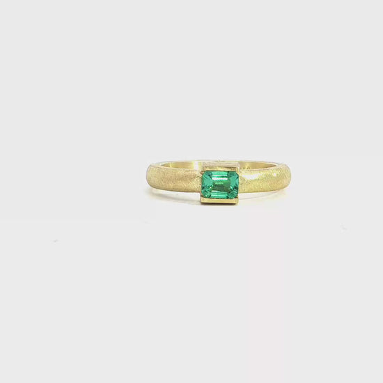 Smaragd-Ring in 18kt Gelbgold – Eismatt, poliert kombiniert